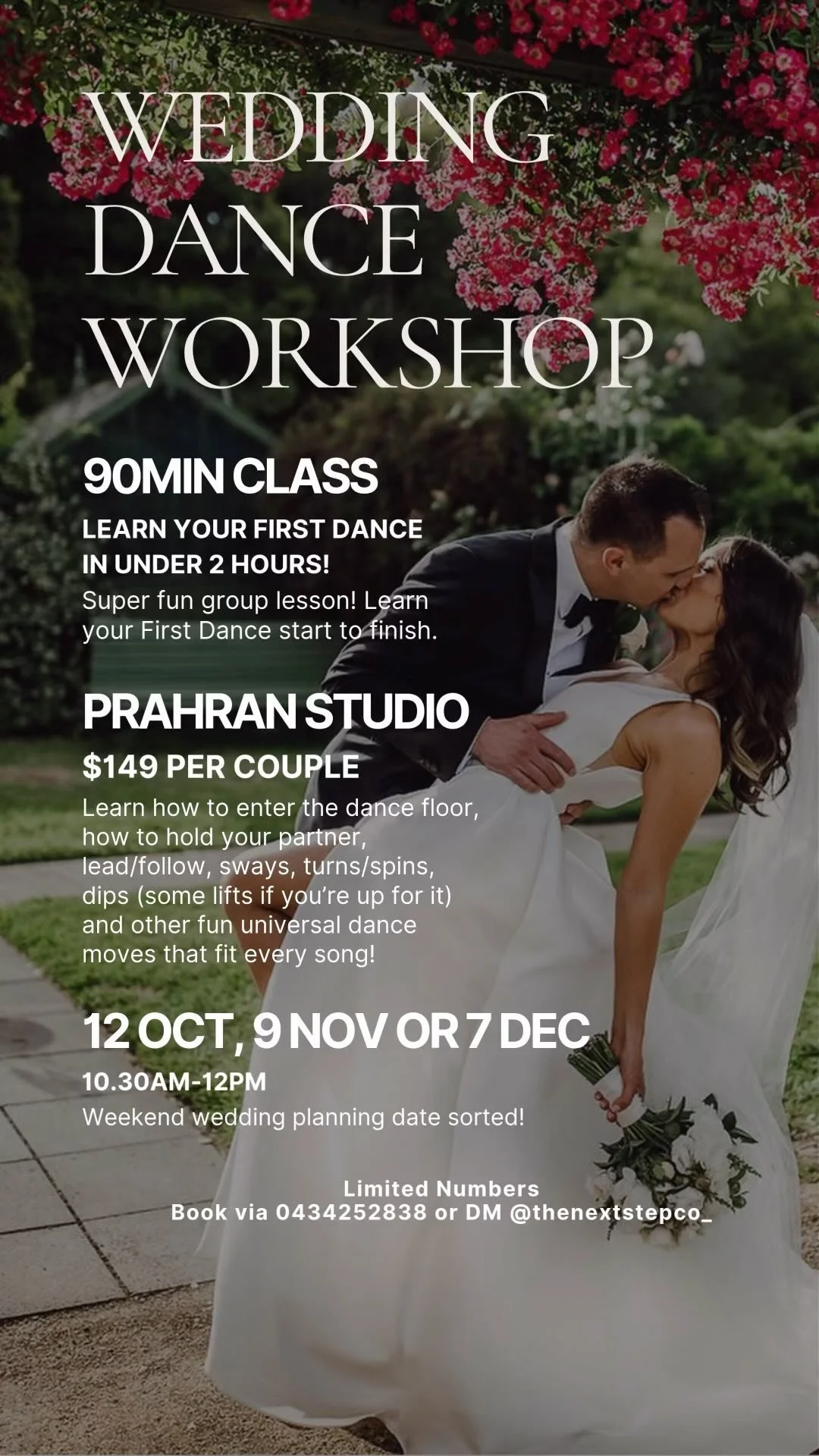 Chev and Will had one private dance lesson a couple of weeks out from their wedding day to help them get First Dance ready! Our 'One & Only' dance package ensures you have some great moves so that you can not only get through your Wedding Dance super comfortably but so you can dance the night away!